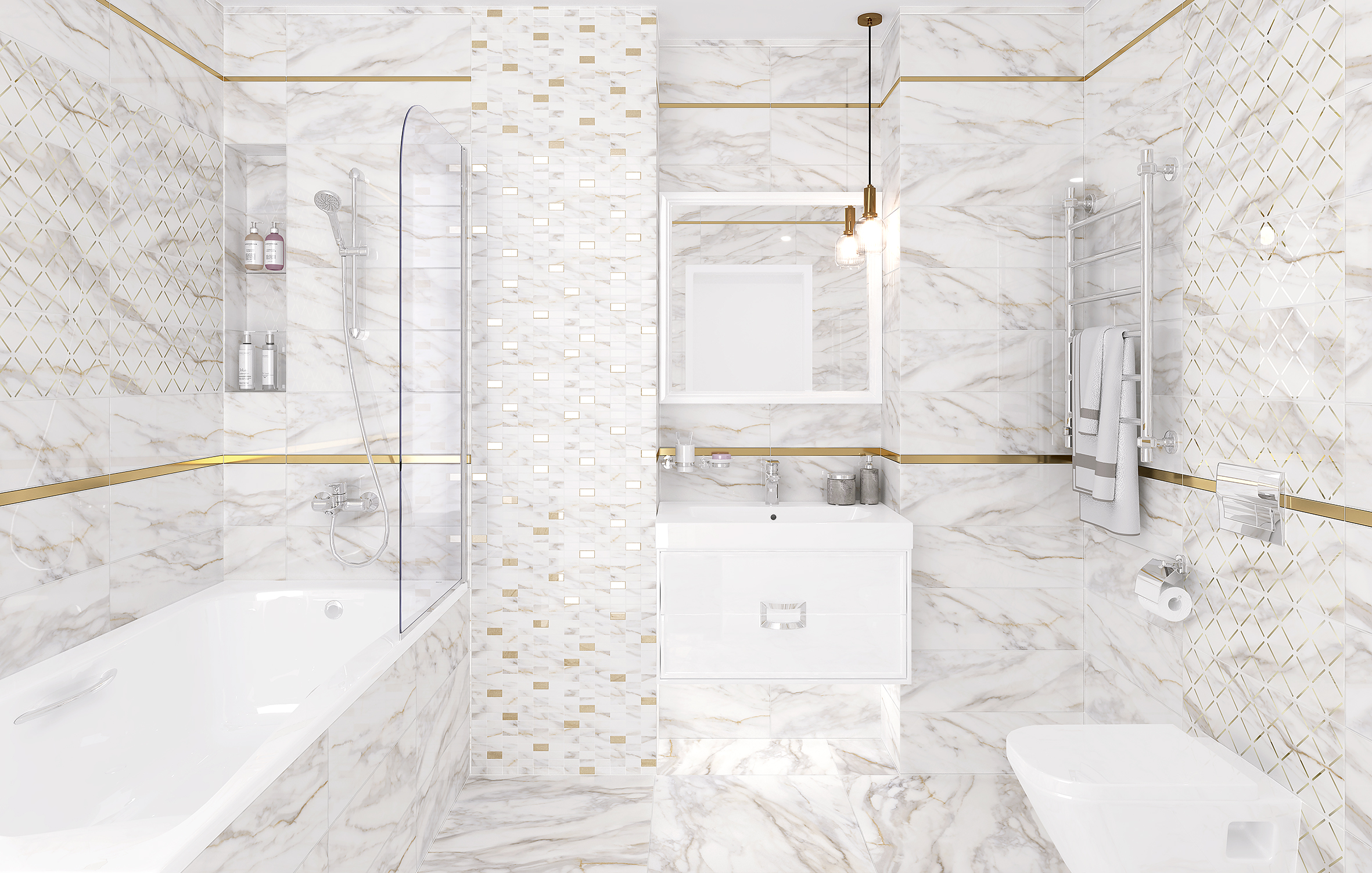 Эта коллекция позволит вам создать шикарную королевскую атмосферу в ванной комнате. Ее основа - проверенная временем строгая классика белого, мрамора с благородными дымчатыми прожилками. Однако такому фону необходимо разнообразие. Как нельзя лучше его помогают создать декоры в которых натуральная неброская натуральная текстура оттенена яркими золочеными вставками, причем, без какой бы то ни было избыточности. Наоборот, геометрический или мозаичный орнаменты смотрятся достаточно строго. Королевское величие и испанский шик - вот мотивы нашей новой коллекции. Оцените сами!