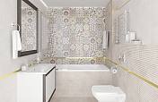 Большая коллекция и настоящий простор для полета вашей фантазии! Ее основа - нежные пастельные тона и мотивы лоскутного шитья. Базовая плитка в сером и бежевом цвете (доступно по 2 оттенка: светлый и темный) станет замечательным фоном для декоров. Они выполнены в двух стилях: пэчворк и геометрия. Причем, мы старались сделать их такими, чтобы они смотрелись органично не только в виде полосы-акцента, но и как контрастное оформление для целой стены или большей ее части. А для логического разграничения в коллекции есть четыре металлических бордюра: два под золото и два под серебро. Они помогут сбалансировать приглушенную цветовую гамму керамогранита.